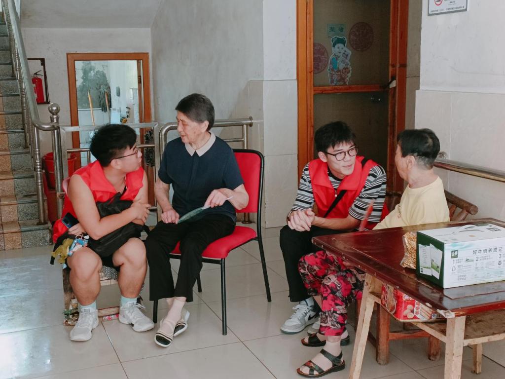 在福利院工作人员的带领下,志愿者们来到了老人们居住的楼栋,大家急忙帮着打扫卫生、收拾床铺。看到老人们坐在大厅内休息,志愿者们便去到了老人中间,陪老人们聊起了家常,人群中时而传来笑声,现场氛围十分热闹。志愿者张思彤是一位山东姑娘,她打开手机相册,向身旁的老人们分享了自己家乡的美景和美食,活动结束后她开心地和大家说到:“没想到爷爷奶奶对我的家乡这么感兴趣,他们很认真地在听我进行介绍,还问了我很多问题,我们好像是打开了一个话匣子,而爷爷奶奶的脸上也总是挂着笑容,我觉得这次来的值了。”