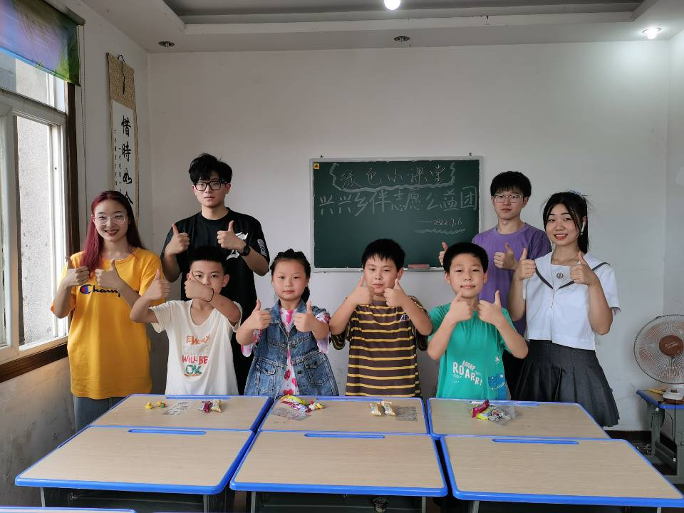 绿水青山就是金山银山,我们兴兴乡伴志愿公益团队向当地乡村的留守儿童科普绿色健康、无公害蔬菜的知识,让孩子们在学习知识中树立了“绿色生活”的理念。当团队的小陈和小廖老师进入教室科普知识和开展活动时,起初他们正襟危坐,瞪着大大的眼睛打量着我们,眼神中充满了无措与无助,但依然有着一丝丝期待,流露出对学习知识、探索新事物的渴望。而为缓解孩子们的紧张情绪,我们提前准备了一些自然现象的有趣问答,他们不断在用他们天马行空的想法猜测着问题的答案,也争相在抢答中得到了夏日里的“甜蜜蜜”的棒棒糖,此时的孩子们早已变得斗志满满。于是我们在轻松愉悦的氛围中进入了绿色生态知识讲授环节,面对我们志愿团的老员工老师,孩子们尽展他们的热情活泼,课堂上积极举手回答问题,对我们科普的知识难点大胆提出质疑。课堂学习氛围浓厚,相处极为融洽。这次活动向当地孩子们传播了绿色无公害蔬菜的相关知识,不仅开拓了他们的眼界,也向年轻一代普及了绿色理念与思想,同样对于普兴村虎渡河生态养殖基地的推广与宣传也起到了一定作用,有利于生态·公益·美丽新农村建设,共创普兴未来。