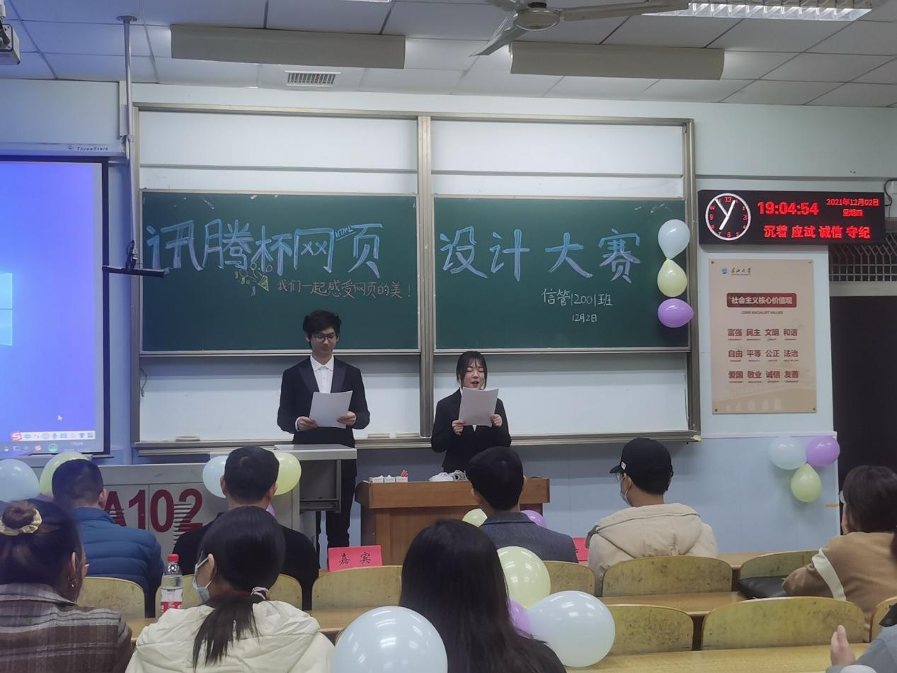 (通讯员:吴佩云)小雪已过,寒意渐浓。十二月到来,抓住2021年的尾巴,由信管协会主办的第十二届网页设计大赛之“迅腾杯”于2日晚在太阳成tyc33455ccwww教学楼13教A区102内正式举行。此次比赛展秉承着“弘扬创新精神,编织科技梦想”的主旨普及必要的前端知识,提升老员工的创新能力和编程技术。此次活动的对象为在20级的信管同学中选出的十组参赛选手。