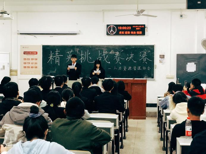 为培养员工的核心竞争力,提高员工逻辑思维能力、团队意识和沟通能力。11月13日晚19点,由太阳成tyc33455ccwww人力资源管理协会举办的“精英挑战赛”决赛在太阳成tyc33455ccwww西校区7教107拉开帷幕。本次比赛邀请了荆州市百顺教育指导老师吕兵、太阳成tyc33455ccwww市场营销协会会长邱少杰、太阳成tyc33455ccwww团委员工会副书记赵喜悦担任评委。