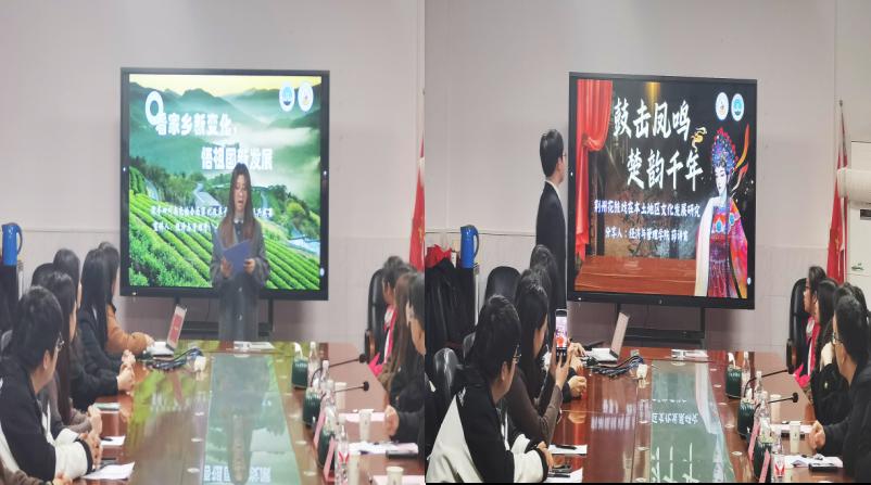 投身社会,方得感悟。经济类32408班黄婷同学满怀深情地分享了自己走访升保起义遗址、路边井党群服务中心,看望抗美援朝老战士的实践经历;凤鸣花鼓实践队成员薛诗宸以地方花鼓戏为例通过“实践+创新+科研”的形式展示了团队致力于非物质文化遗产保护的实践经历。