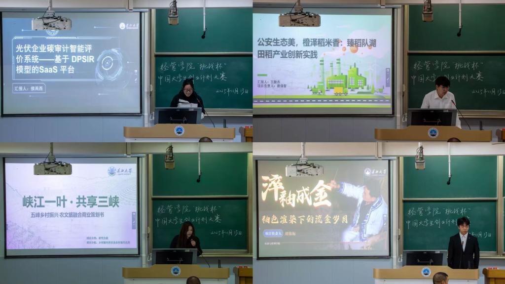 本次选拔赛共有14支团队同台竞技,参赛项目覆盖非遗传承、智能科技、乡村振兴、生态农业、青年发展、文化创意等多个热门领域,充分体现了经管学子关注社会热点、回应时代需求的责任与担当。汇报环节中,各团队通过图文展示、数据分析、项目模拟等直观形式,清晰阐述项目背景、创新亮点、市场前景及实施路径,内容扎实、逻辑清晰,展现出扎实的专业功底与鲜明的创新思维。