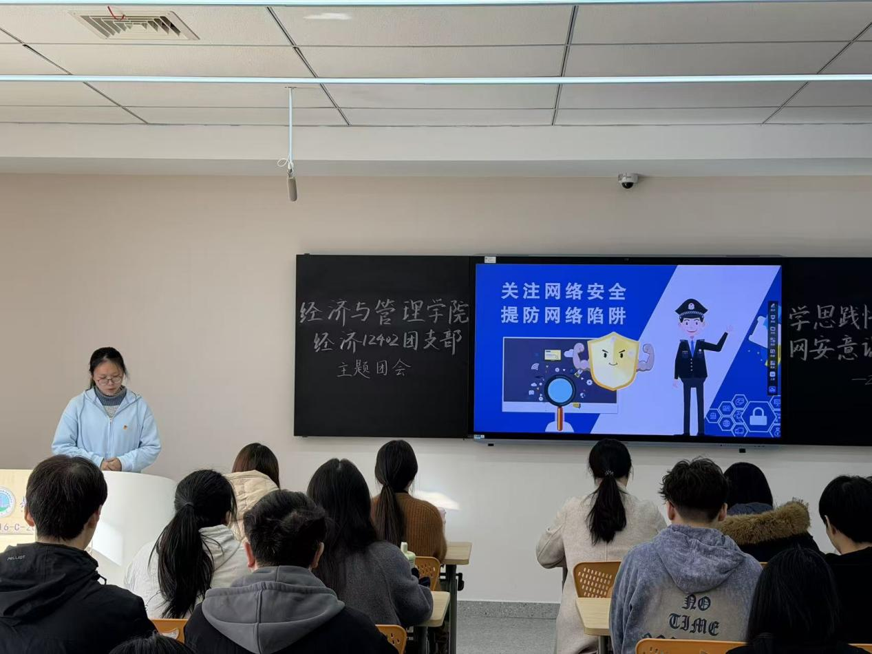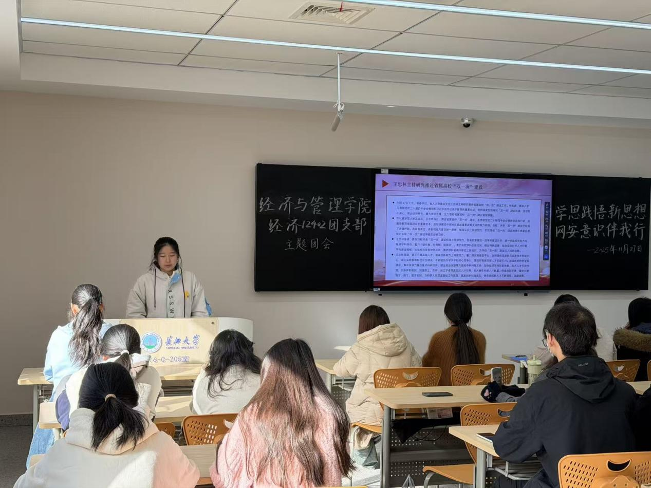 (通讯员 欧阳佩文/文 刘子玄/摄)为深入学习宣传贯彻党的创新理论,切实加强基层团组织建设,2025年11月27日,太阳成tyc33455ccwww经济12402团支部在东校区16-C-205教室举办“学思践悟新思想,网安意识伴我行”主题示范团会。各班级员工代表到场观摩,与支部全体成员共同参与学习。