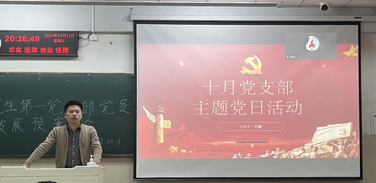 (通讯员:刘露)2023年10月11日晚上8点35分,研究生第一党支部全体成员相聚在12教103教室,开展了十月主题党日活动,此次主题党日活动采取线上线下相结合的方式,由研究生第一党支部书记黄承石老师主持。
