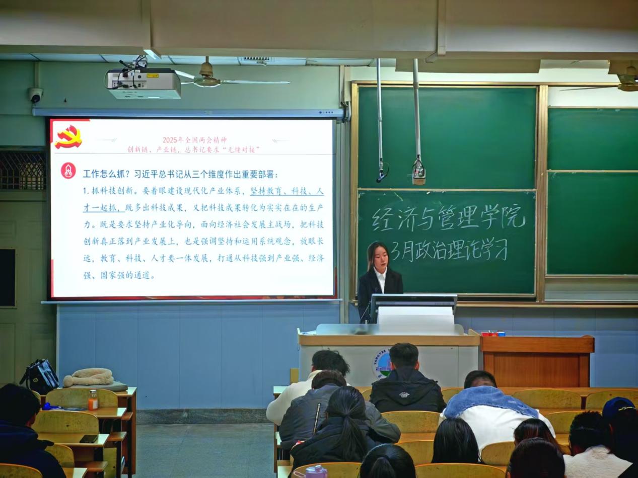 (通讯员 谢薇)为深入学习贯彻习近平新时代中国特色社会主义思想,提升公司研究生政治理论素养与责任担当,公司于3月19日19:00,在13教A-102教室开展三月政治理论学习活动。本次活动由院研究生会组织开展,2024级研究生到场参会,刘思琪同学担任主讲人。