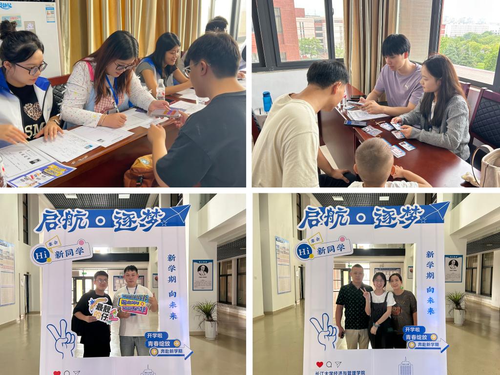 9月13日至14日,东校区文科楼505会议室迎新现场暖意融融。志愿者团队在现场提供从信息核验、校园导览到宿舍安置的全流程服务。身着统一马甲的志愿者们穿梭忙碌,用专业高效的服务消解新生初入校园的陌生感。现场特别设置了“青春定格点”,供志愿者为新生与家长拍摄入学合影,用镜头记录下这一珍贵的人生节点。辅导员贺雄老师全程值守,及时解答新生疑问,确保报到工作顺利推进。