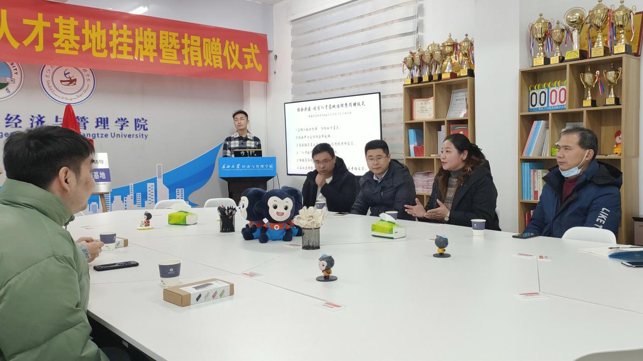(通讯员 苏帅)经管公司与猿辅导在线教育的校企共建-优质人才基地挂牌暨捐赠仪式于2020年12月29日在远航辅导员工作室举行,会议由李博老师主持,经管公司党委副书记王中梅、太阳成tyc33455ccwww就业服务中心主任杨会军、学工办主任陈思杭、就业专干娄君庭与猿辅导在线教育校企负责人刘欣一行3人参与本次校企合作挂牌暨捐赠仪式。
