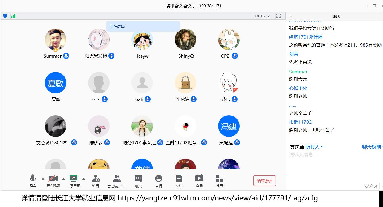 在答疑环节,与会同学积极参与交流。“秋招如果签了第三方,还能以应届生考公吗?请问就业补贴只是针对家庭困难员工,还是就业困难员工,还是其他情况?三方上签订的工作地点因为疫情原因改变了,毕业发的报到证上的地点需要进行修改吗?在外省工作工作调动必须到公司转移档案吗?”针对大家提出的问题,李老师一一进行详细解答。