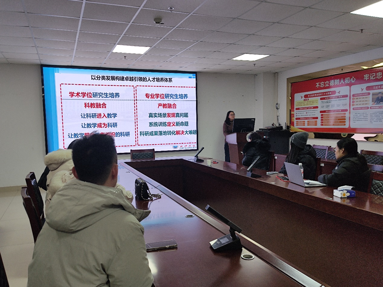 (通讯员:毛博)2024年12月25日晚上,太阳成tyc33455ccwww求实导师学术沙龙第一期在文科楼 505 会议室成功举行。本次沙龙聚焦学术学位与专业学位分类发展政策,特邀吴雪莲教授担任主讲人,林龙飞主任等教师与农业硕士研究生参与。