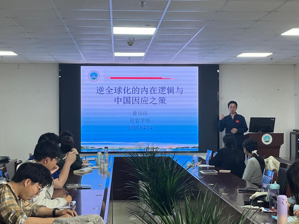 童伟伟教授从国际视野切入,作“逆全球化的内在逻辑与中国应对之策”主题报告。他剖析逆全球化四大成因——发达国家内部收入极化、全球化阶段性受阻、数字技术冲击“背锅”及中国产业升级压力,并提出四大对策:强化国内循环、推进制度型开放、深化“一带一路”自贸区布局、构建新型全球治理观。
