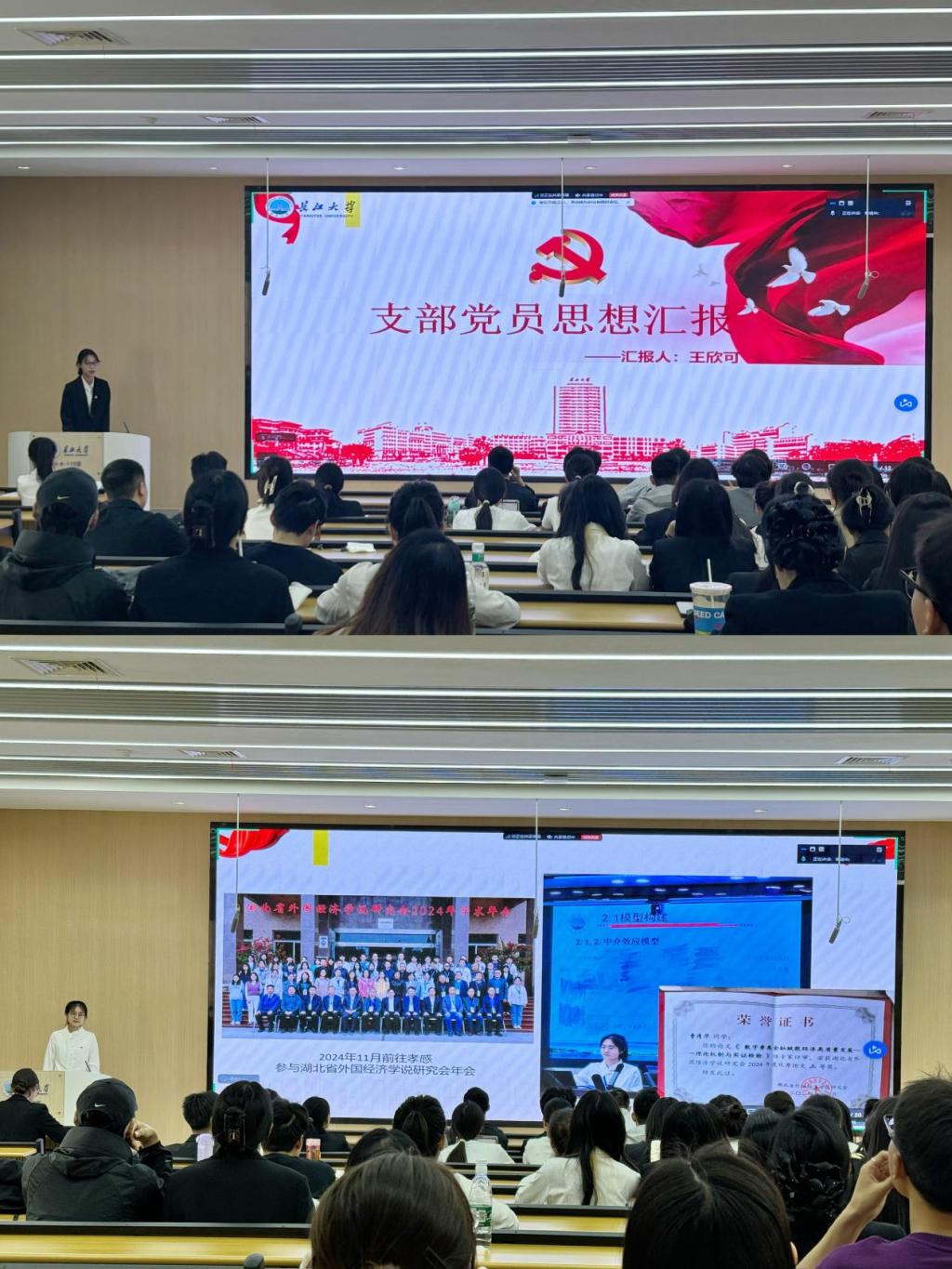 思想汇报环节,王欣可同志通过分享自己的实践经历,告诉同志们如何践行党员责任、发挥党员的先锋模范作用。曹清华同志说道:作为一名研究生党员,在日常生活中要做到学思结合、知行合一,要以实际行动传播正能量,提升自己的道德修养与人格魅力。