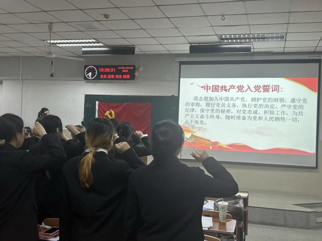 (通讯员 娄君庭、彭雨欣)金秋十月,丹桂飘香。为深入学习贯彻习近平总书记最新重要讲话和重要指示批示精神,全面落实上级党组织工作部署,持续深化理论武装与作风建设,2025年10月30日下午6:40,会计系本科生党支部在12教204教室开展十月主题党日活动,支部全体员工党员参与活动。
