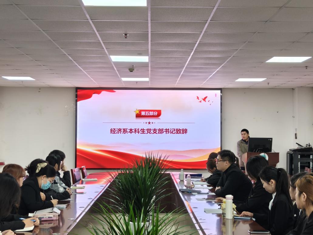 最后,经济系本科生党支部书记郭俊致辞,以“人生故事书”作喻,鼓励同学们把握未来——这本“书”没有固定答案与章节,要以党员的责任为笔、靠自身努力创造过程、填补遗憾,以更优姿态前行。同学们也表示会牢记老师的悉心指导与关怀。