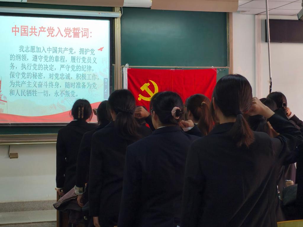活动在庄严的重温入党誓词中拉开序幕。在支部青年委员薛诗宸的带领下,全体党员面向党旗,高举右拳,以铿锵誓言表达对党的忠诚与为共产主义事业奋斗终身的坚定决心。